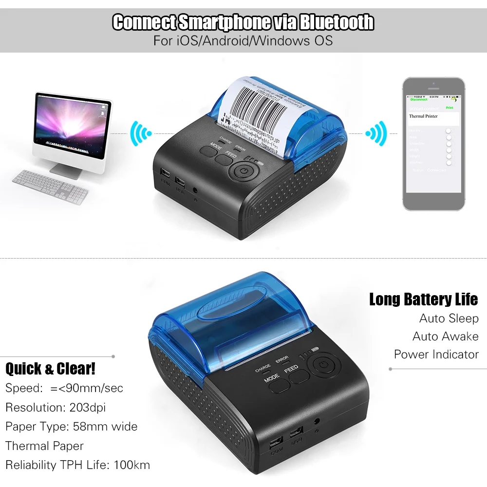 Zj 5805dd 58mm Mini Portable Mobile Printers Bluetooth Enabled Pos Printer Usb With Driver Pos 58 For Sale Mini Bluetooth Printer Manufacturer From China 106250568
