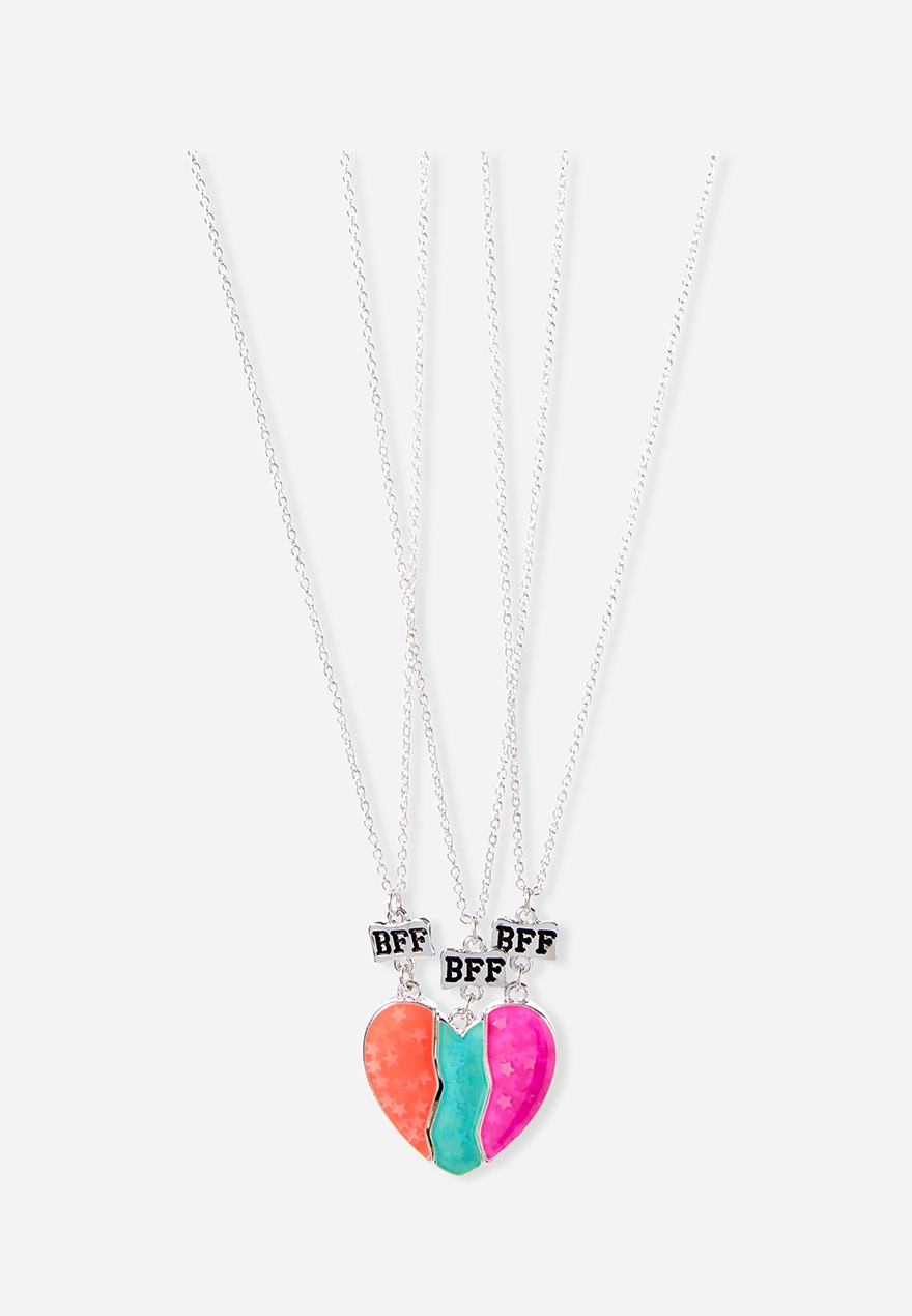 Bffs Heart Pendant Girls Necklace 3 Pack Justice