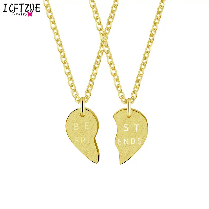 Icftzwe Gold Chain Ketting Split Heart Necklace Women Stainless Steel Choker Collares Best Friend Friendship Jewelry Gift Gold Chain Stainless Steel Chokerbest Friend Aliexpress