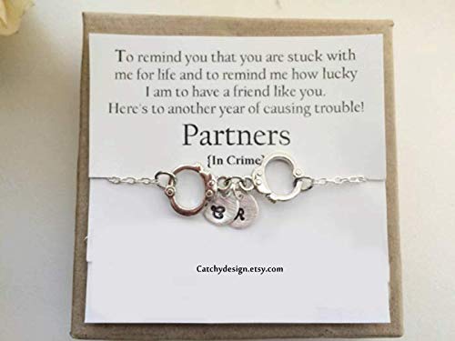 Amazon Com Personalised Partners In Crime Bracelet Handcuff Bracelet With 2 Initials Best Friend Gift Bff With Friendship Quote Long Distance Handmade