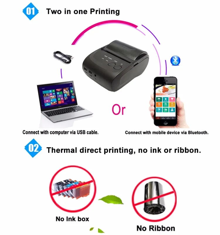 58mm Impressora Termica Ios Android Pos Terminal Printer Bluetooth Thermal Receipt Printer For Portable Printing Hs 590a Mobile Printer Bluetooth Mini Printer