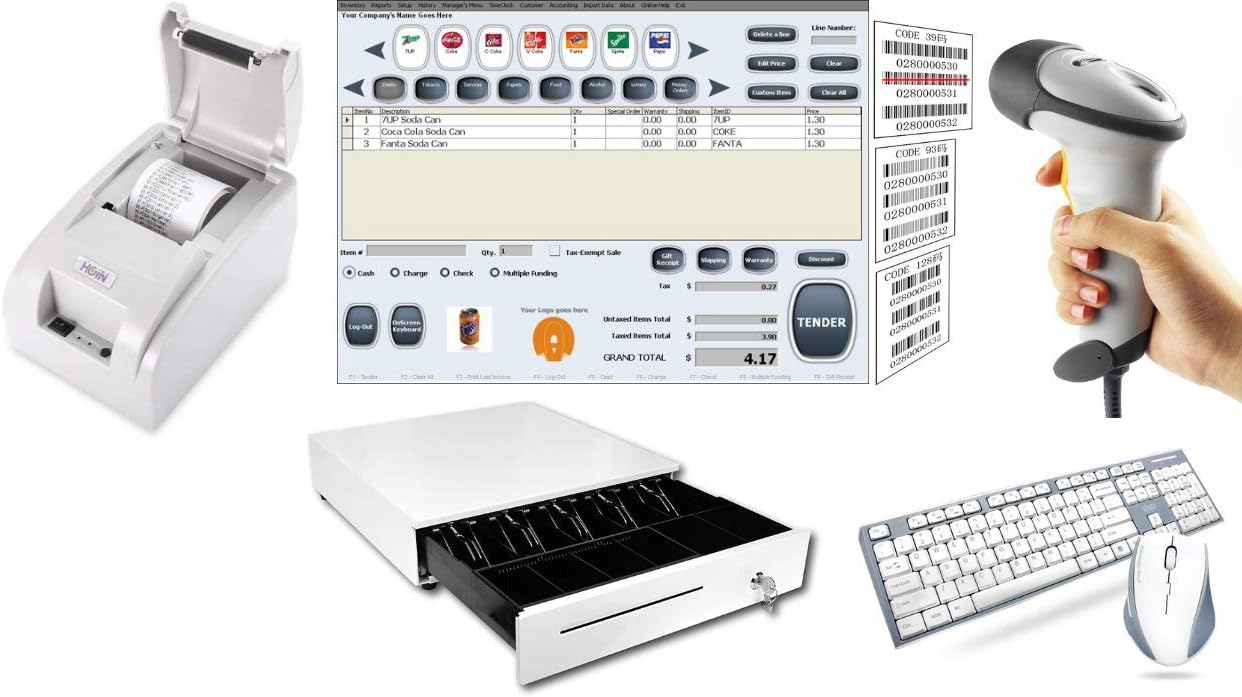 Amazon Com Point Of Sale Pos System Includes Software Barcode Scanner Thermal Printer Cash By Namesbrand White Electronics
