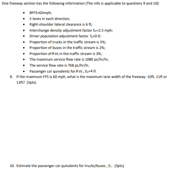 Solved One Freeway Section Has The Following Information Chegg Com