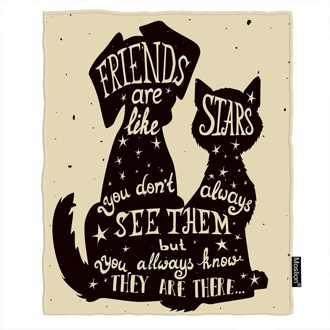 Amazon Com Moslion Cat Dog Throw Blanket Kitten Puppy Friends Friendship Day With Quote Blanket Home Decorative Flannel Warm Travel Blankets 50x60 Inch For Couch Bed Home Kitchen