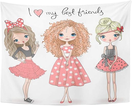 Amazon Com Tarolo Decor Wall Tapestry Pink Sister Three Beautiful Cute Girls The Inscription I Love My Best Friends Cartoon 80 X 60 Inches Wall Hanging Picnic For Bedroom Living Room Dorm Home